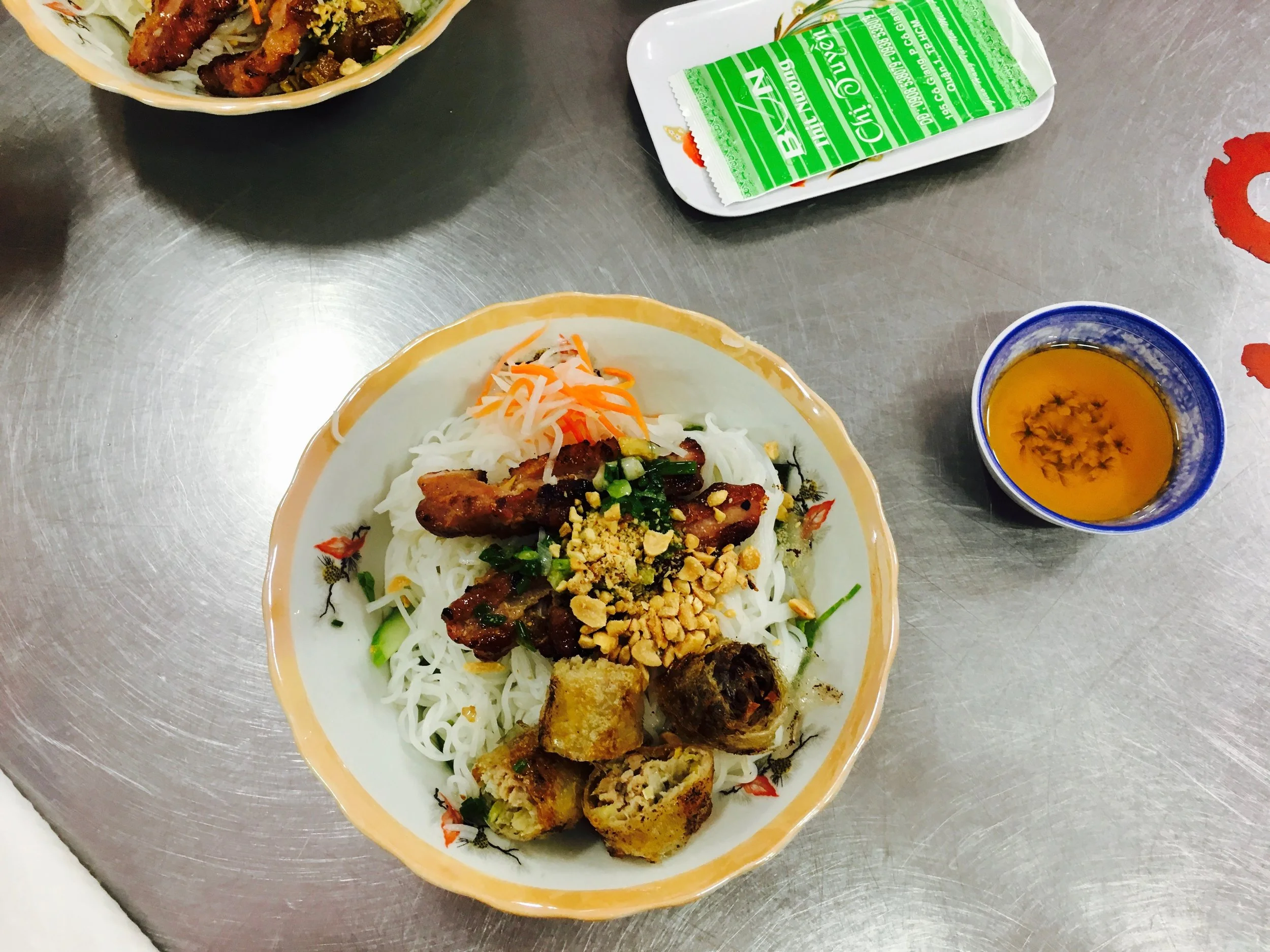 Saigon style Bun Cha- pork on top of noodles, with peanuts -YESSSS seeing the introduction of peanut in the south and couldn't be happier.